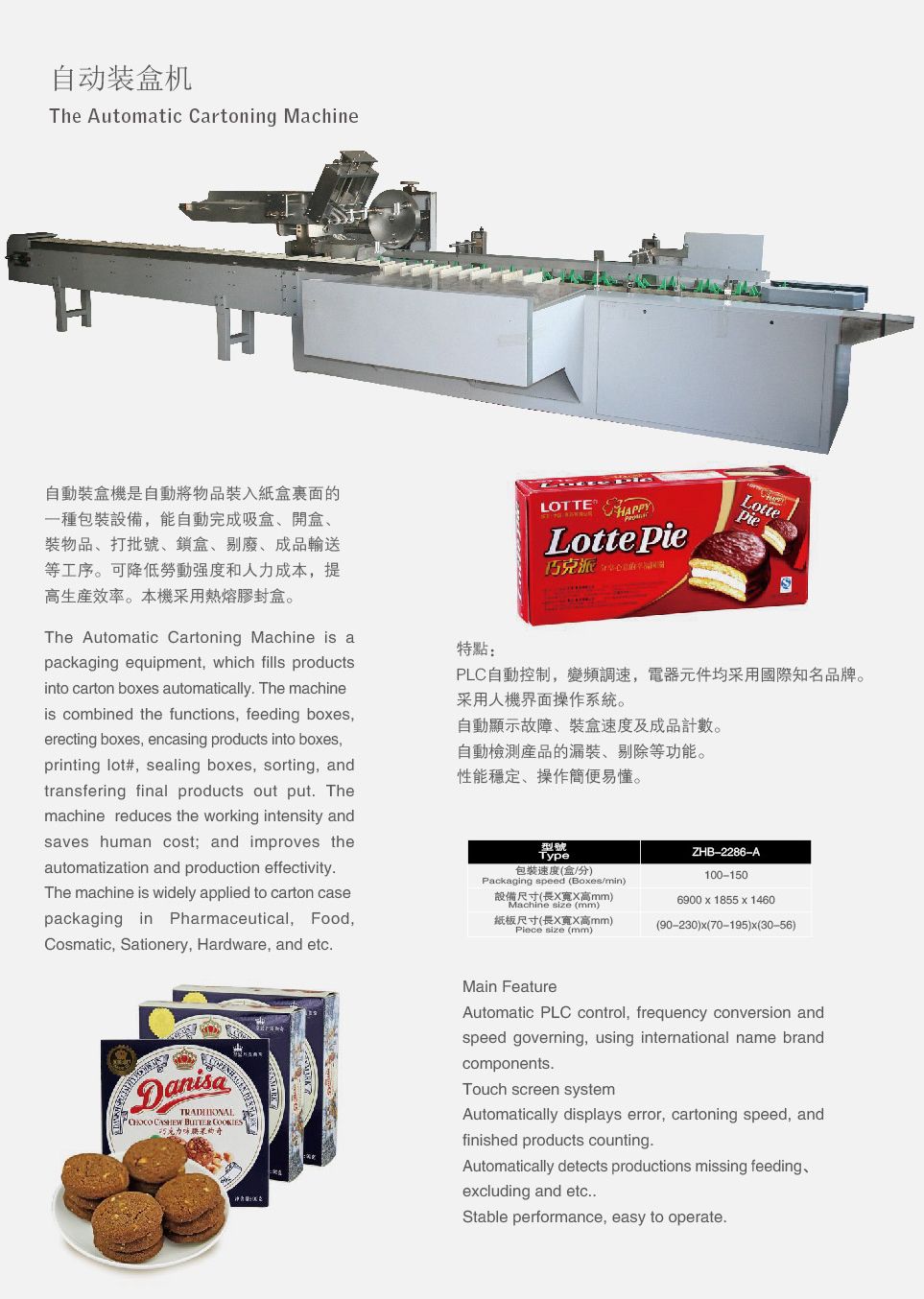 公司主营产品:餐具包装机、理料输送线、五金电器包装机、全自动折盖封箱机